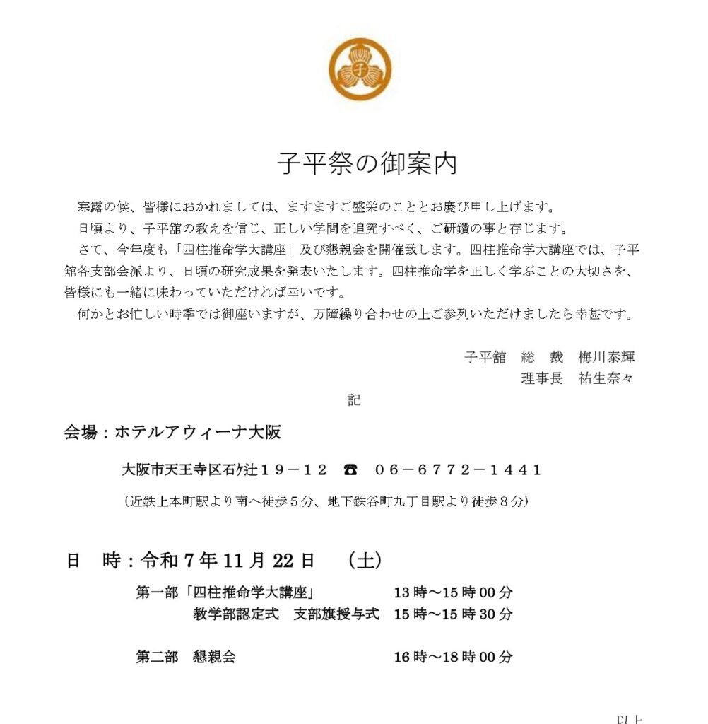 2025年度 子平祭のご案内【最新】